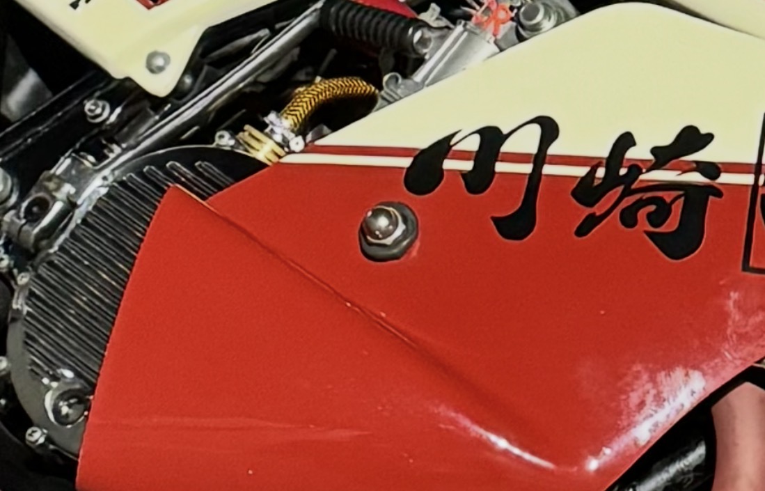 ロケットカウルの両サイドにインパクト大の特大ナットです。